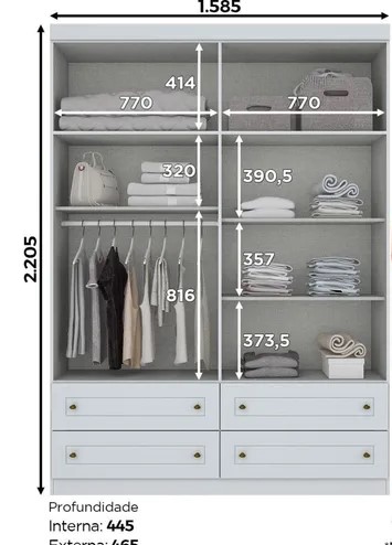 Dimensoes do Produto: Altura: 220,5 cm Largura: 158,5 cm Profundidade: 46,5 cm