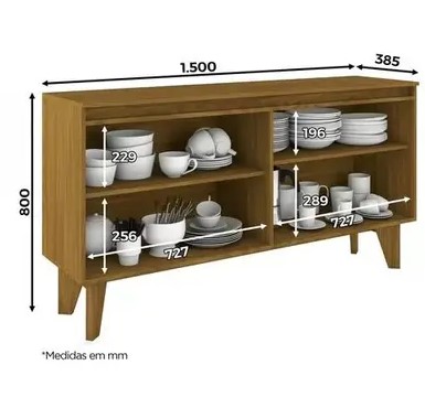 Dimensões do Produto Altura de 800 mm, largura de 1.500 mm profundidade de 385 mm
