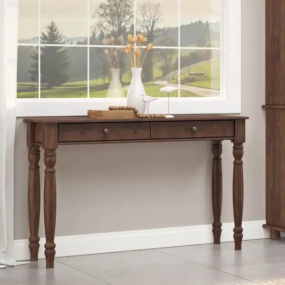 Aparador 2 Gavetas e Pés Torneados Rubi Café Madeira Pinus – Finestra O Aparador com 2 Gavetas e Pés Torneados em Madeira Pinus é a peça ideal para agregar charme e funcionalidade ao ambiente. Suas gavetas oferecem espaço prático para organização, enquanto os pés torneados conferem um toque de elegância ao design clássico. Feito em madeira pinus, combina durabilidade e estilo natural, perfeito para salas, corredores ou hall de entrada.