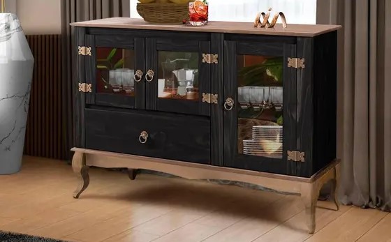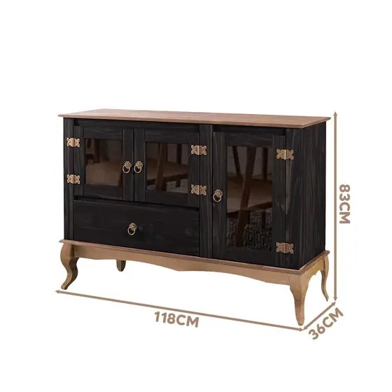 3 portas com vidros de 3 mm e fechos magnéticos: Praticidade e segurança no armazenamento, com um toque de elegância. Conta também com uma prateleira interna.