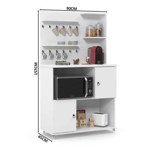 Cantinho do Café Aconchego, ele é ideal para receber bem, encantar e viver melhor. Possui um tampo de 25mm transmitindo um visual mais imponente e, também, dispõe de rodízios de silicone que facilitam a locomoção caso necessário. É feito em MDP e conta com 2 portas e 2 nichos, além dos ganchos que tem capacidade para 12 xícaras. É perfeito para um ambiente aconchegante. Aproveite.
