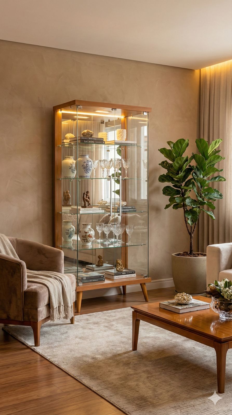 Características: – Portas, prateleiras e laterais em vidro temperado; – Puxadores de alumínio polido; – Espelho no fundo de 3mm; – Luminária LED (Bivolt); – 4 pés com estilo Retrô em madeira maciça; – Pintura Ultravioleta com acabamento fosco.