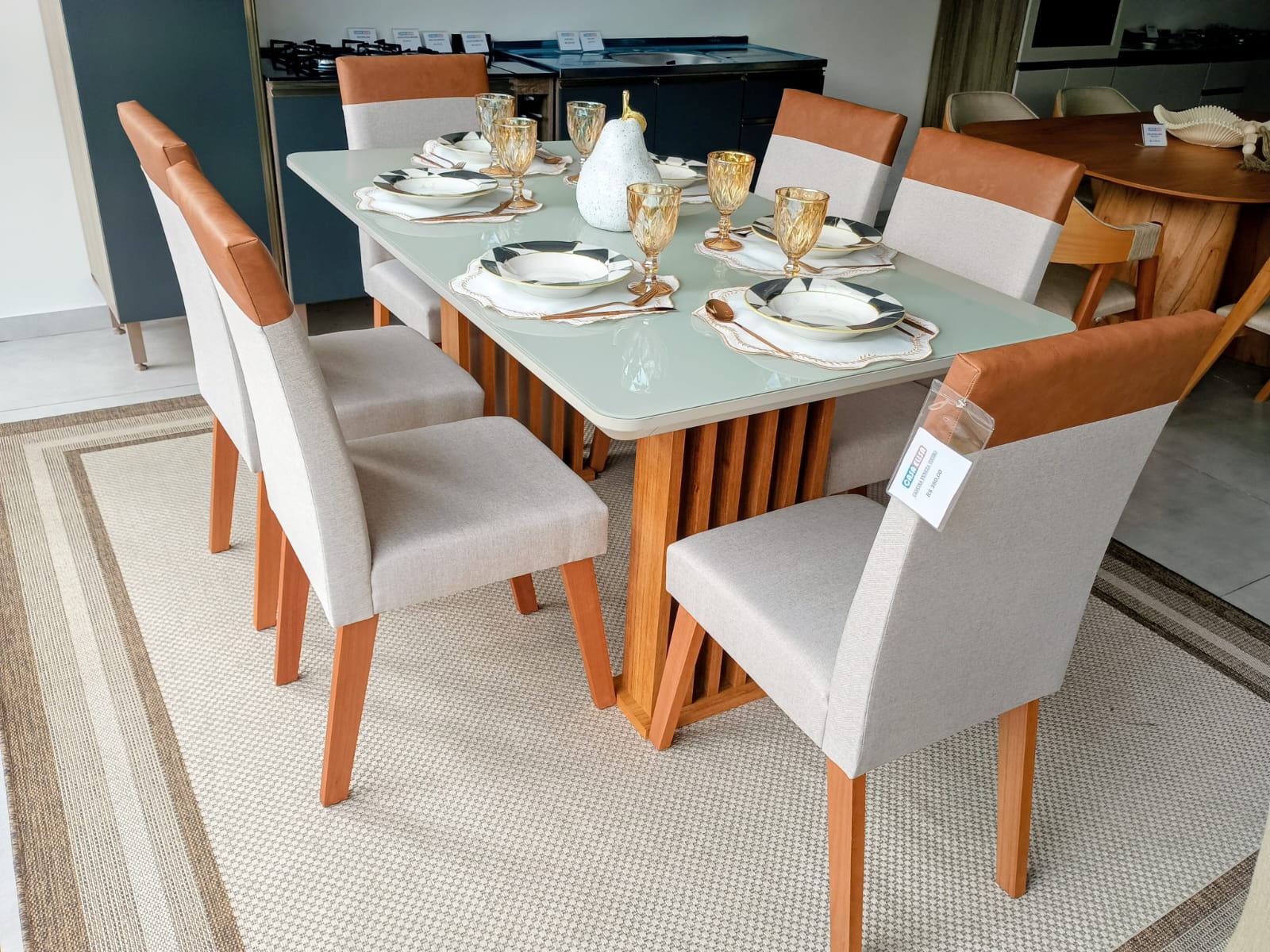 Valores unitários: Mesa Munique 1,60 x 90cm com tampo de vidro Valor R$ 1.455,00 Cadeira Veneza R$ 280,00 cada